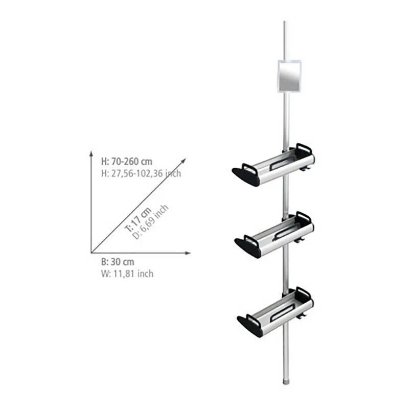 - Contenu de la livraison : Barre télescopique, 3 tablettes avec crochets, 1 miroir anti-buée